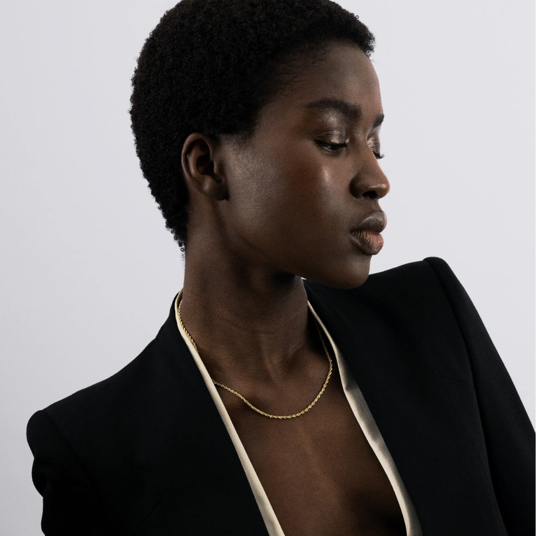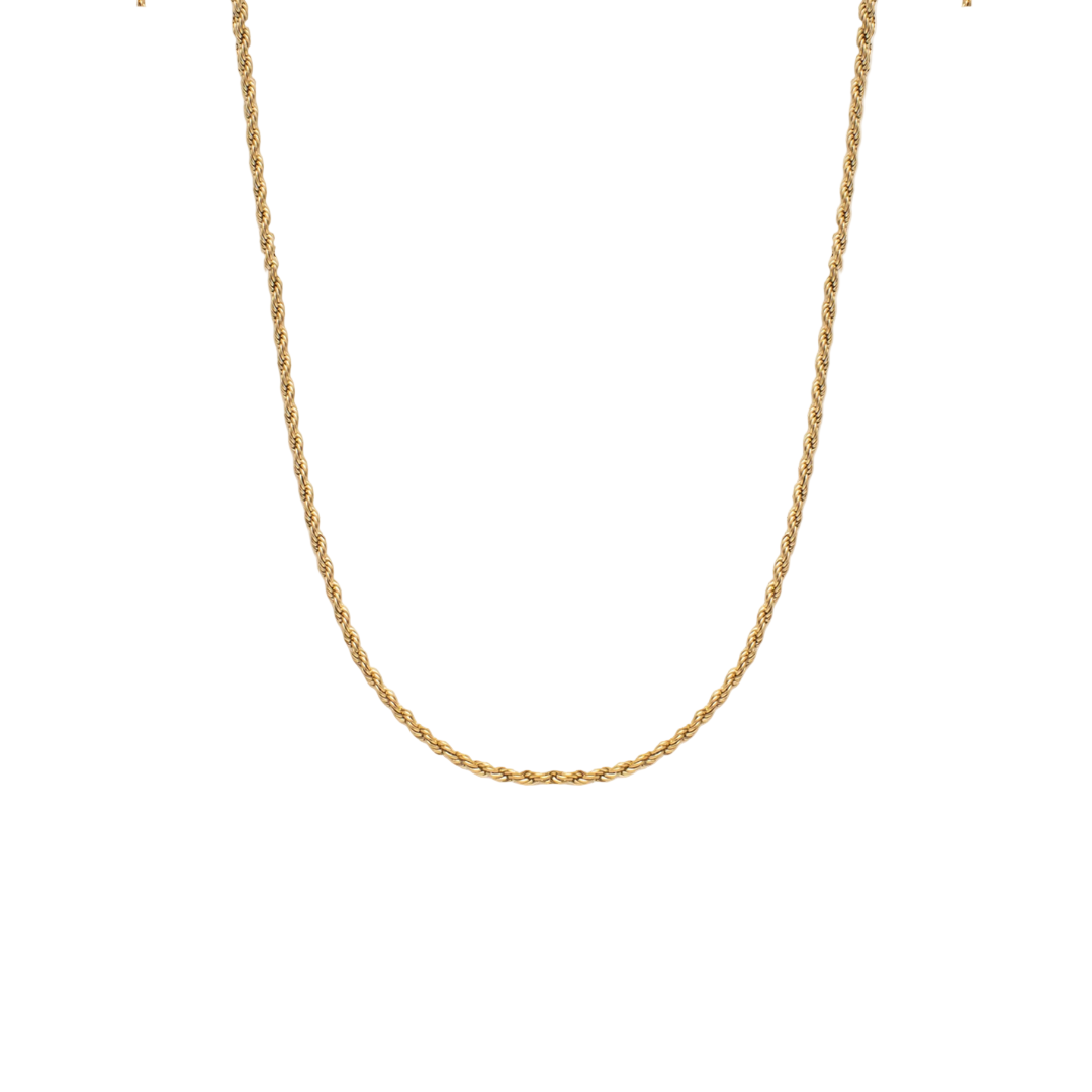Maak kennis met de Touwschakel Halsketting, een waterdichte touwketting gemaakt van verguld roestvrij staal. De ketting heeft een glanzende gouden afwerking en is verstelbaar van 45 tot 48 cm, is bestand tegen aanslag en geschikt voor dagelijks gebruik. Perfect om alleen te dragen of als laagje, en perfect om cadeau te geven.